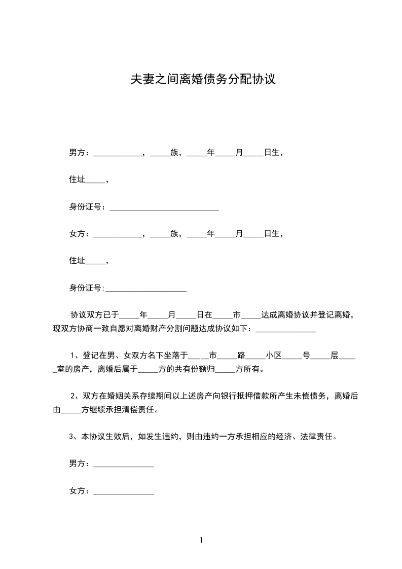 协议双方已于_____年_____月_____日在_____市_____达成离婚协议并登记离婚,现双方协商一致自愿对离婚财产分割问题达成协议如下:_______________