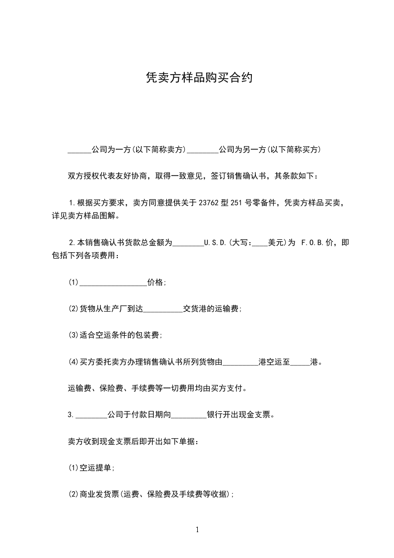 1.根据买方要求,卖方同意提供关于23762型251号零备件,凭卖方样品买卖,详见卖方样品图解。