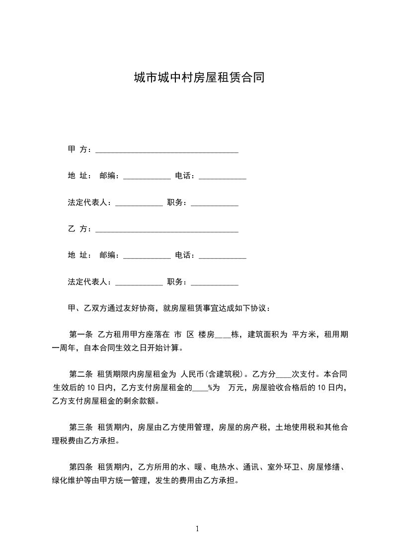 1-1、甲方将其合法拥有的座落在本市 区(县) 路 弄(新村) 号 室(部位) 出租给乙方使用。