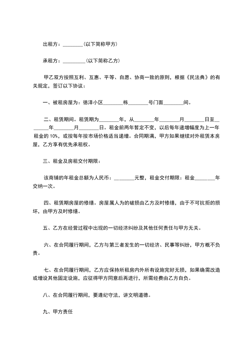 10-3、在租赁期限内,甲方因非本合同第九条第1款规定的情况,擅自解除本合同,提前收回该房屋的,甲方应按月租金的 倍向乙方支付违约金,若支付的违约金不足抵付乙方损失的,甲方还应负责赔偿。