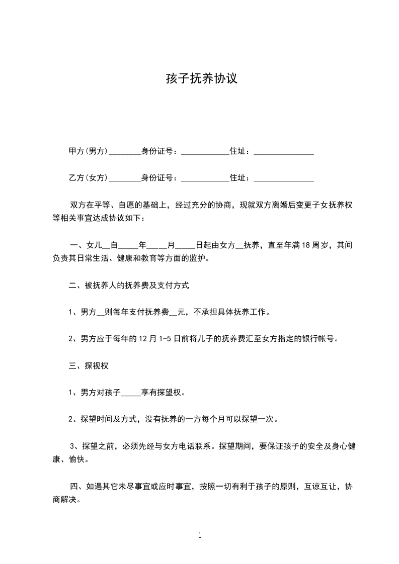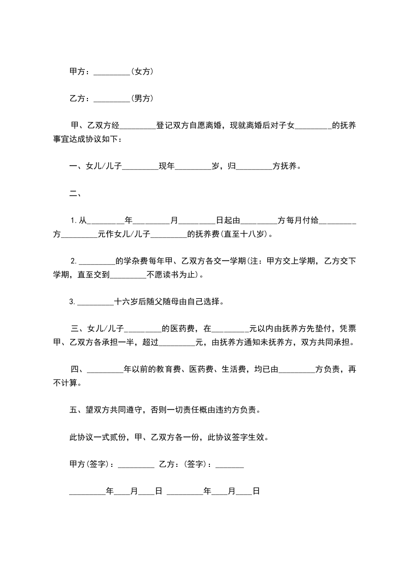 四、如遇其它未尽事宜或应时事宜,按照一切有利于孩子的原则,互谅互让,协商解决。