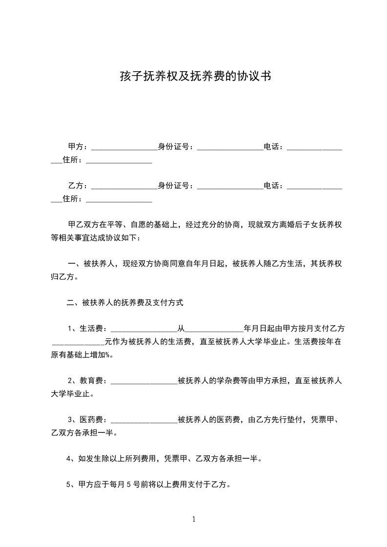 1、生活费:从_____________年______月______日起由甲方按月支付乙方_____________元作为被抚养人的生活费,直至被抚养人大学毕业止。