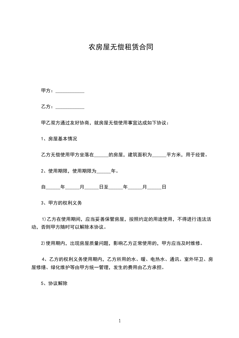 甲乙双方通过友好协商,就房屋无偿使用事宜达成如下协议: