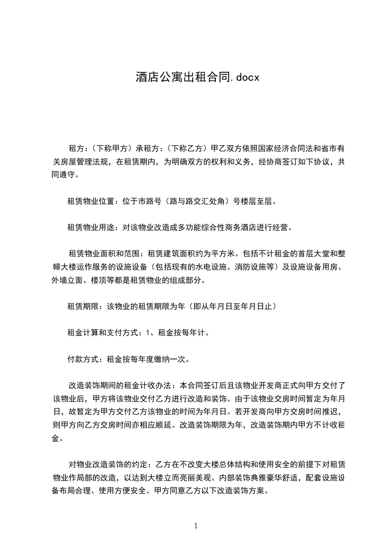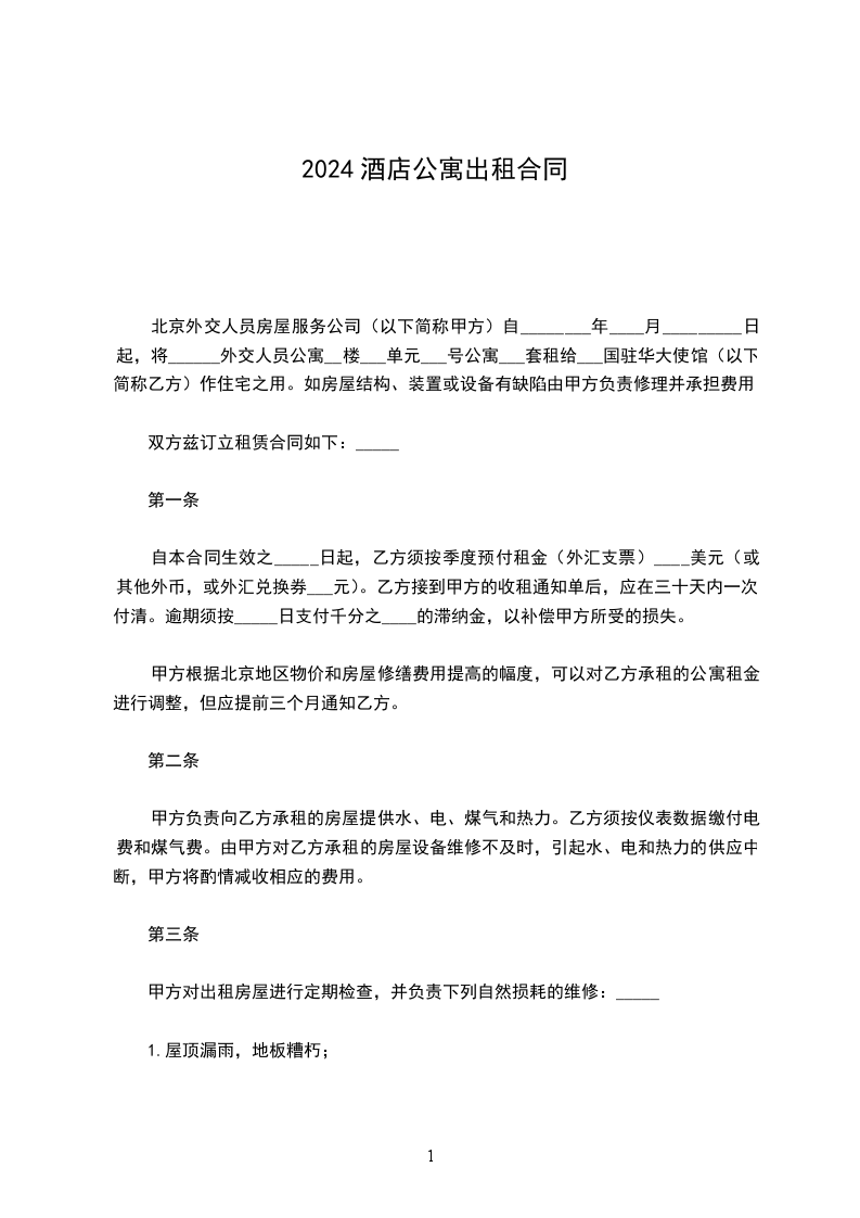第一条甲方将__________出租给乙方。