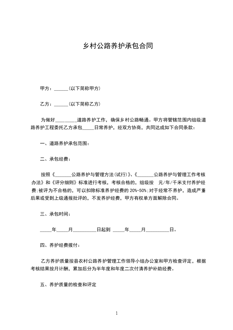 为加强村级公路的养护管理,保障公路完好畅通,根据相关法律法规,甲乙双方经友好协商,就村级公路养护事宜达成如下协议: