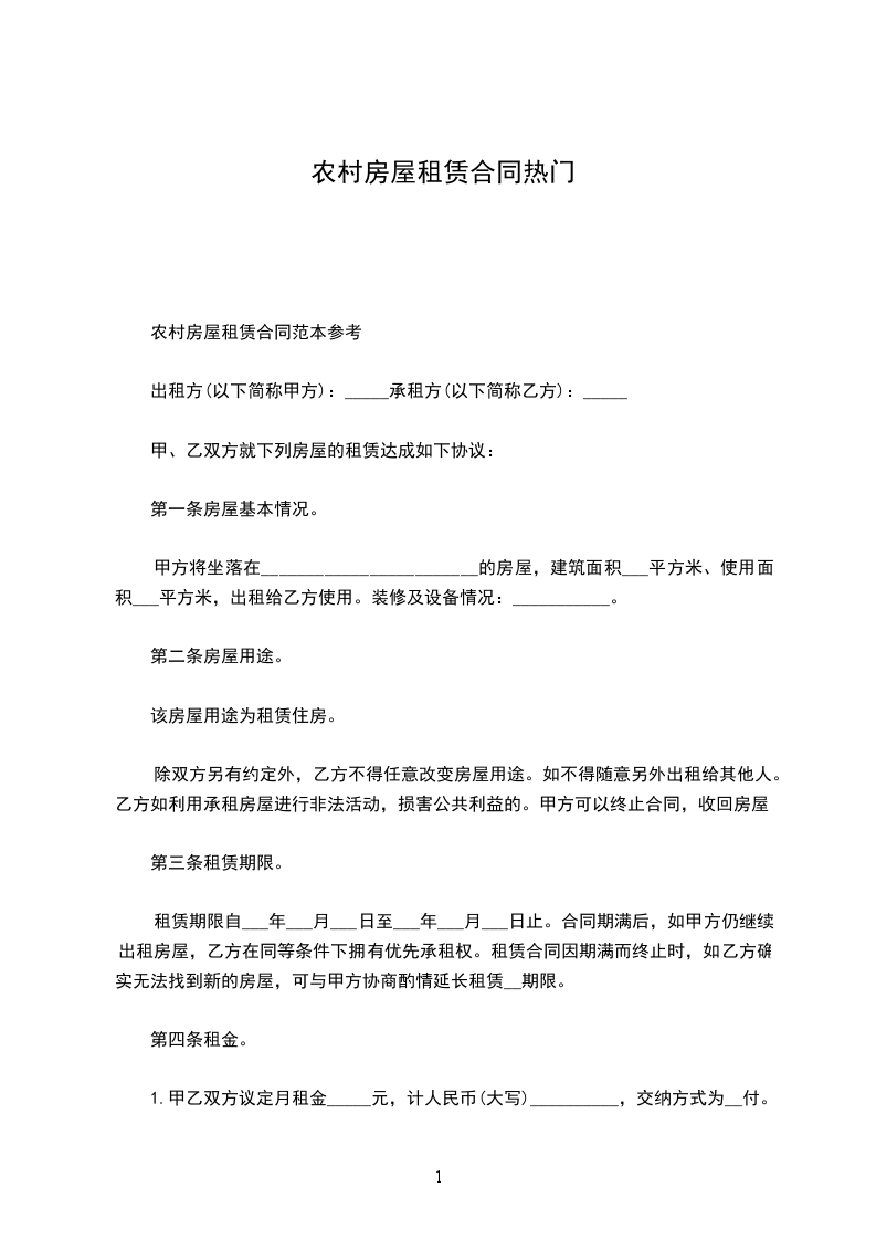 1. 门面位置:甲方将位于[农村具体地址]的门面出租给乙方使用。