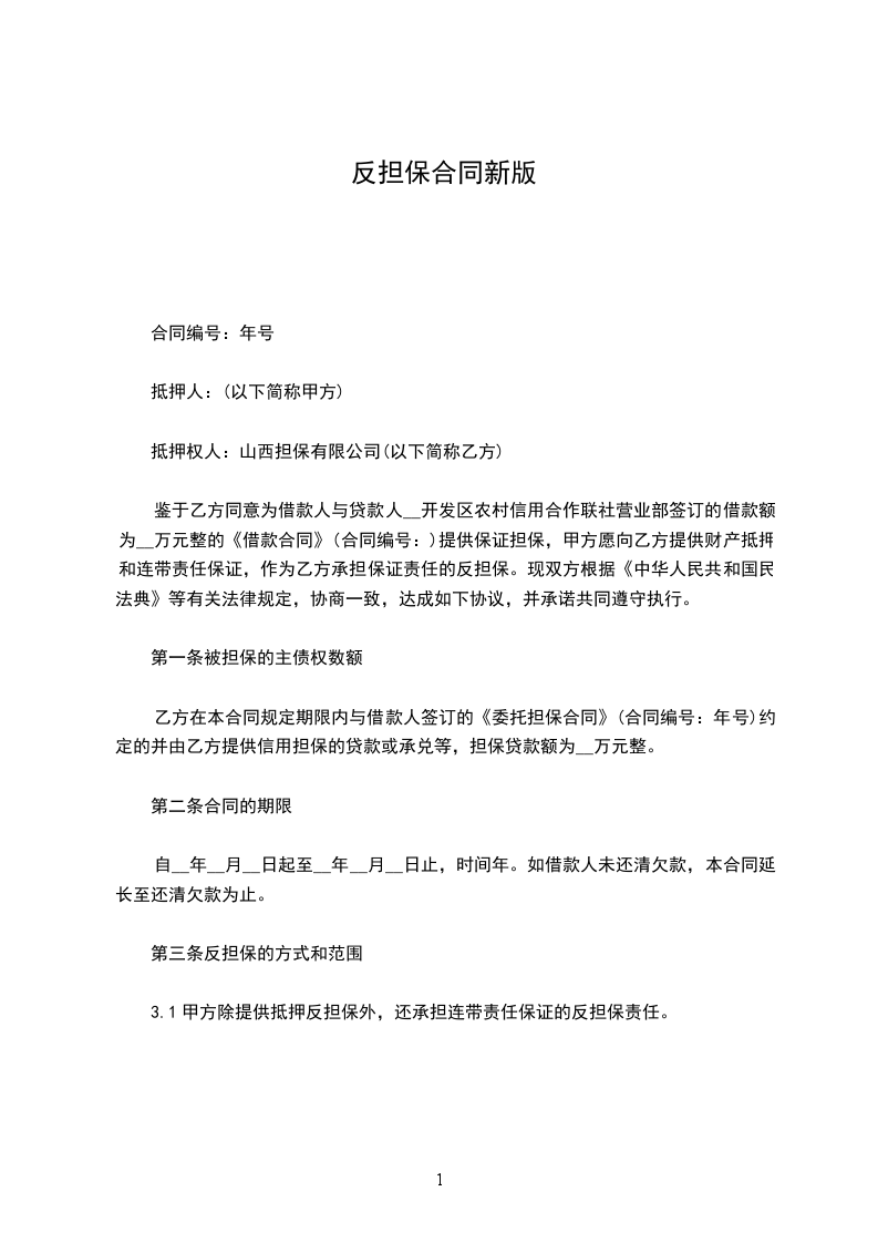 于_______年_______月_______日就项目签订了第_______号合同(下称”合同”)。应甲方要求,________与甲方于_______年_______月_______日签订了第_______号担保契约,并于_______年_______月_______日开立了以乙方为受益人,金额为_______元整的第_______号保函(下称”担保人”)同意出具反担保,特在此不可撤销地和无条件地向________作出下述保证事项:_________
