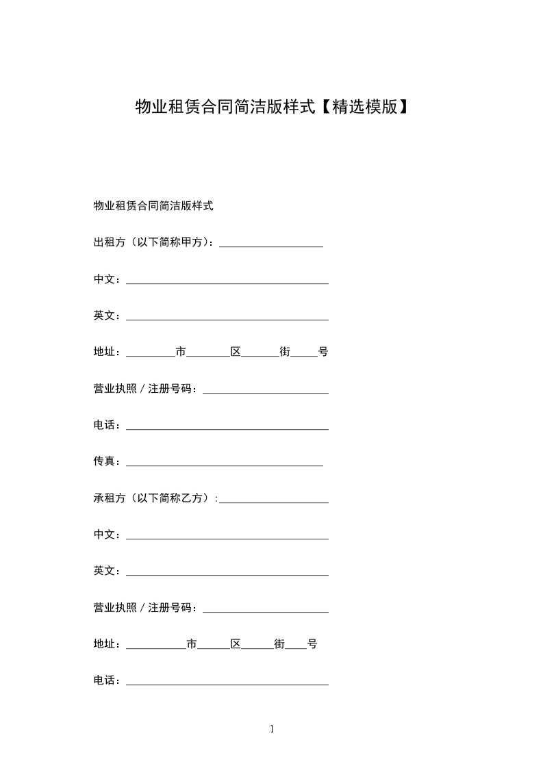 出租方姓名 /名称:(以下简称“甲方” )_________