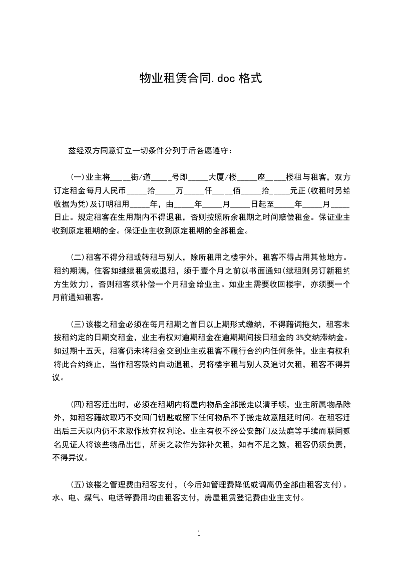 一、租赁物业名称及地址:____________________________________