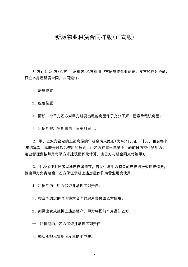 甲、乙双方就甲方愿出租、乙方自愿承租物业事宜,经双方协商一致,同意签订本物业正式租赁合约。