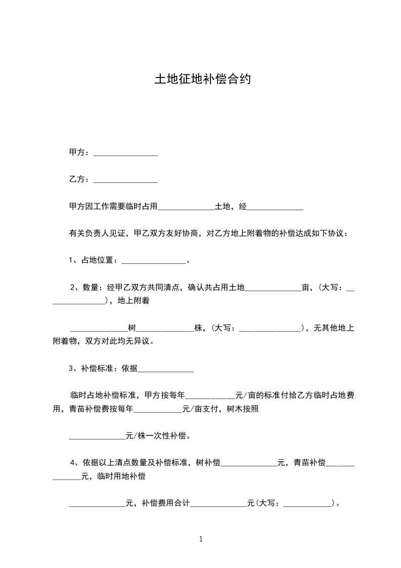 临时占地补偿标准,甲方按每年____________元/亩的标准付给乙方临时占地费用,青苗补偿费按每年____________元/亩支付,树木按照