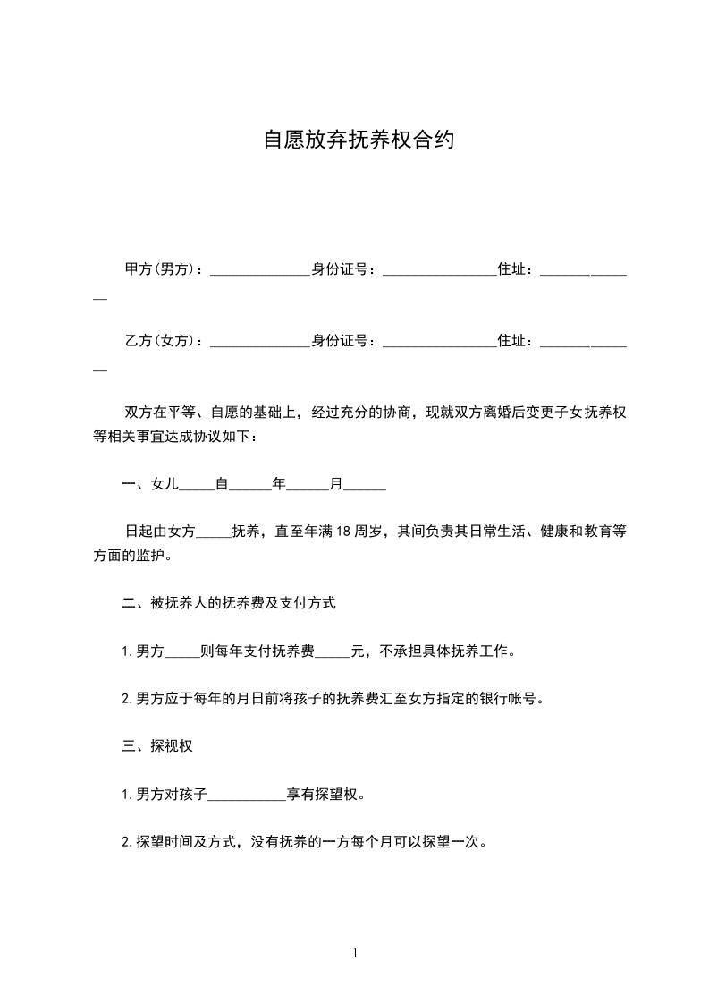 日起由女方_____抚养,直至年满18周岁,其间负责其日常生活、健康和教育等方面的监护。