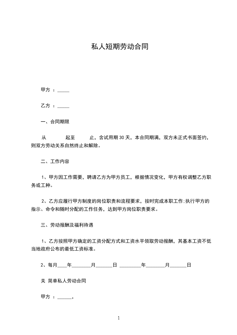 第一条 本合同于——年——月——日生效,期限——年,其中试用期至——年——月——日止。如双方需要,可在合同期满前一个月协商续签雇佣合同。如合同期已满,双方不再续签合同,但受雇方从事的有关工作和业务尚未结束,则合同应顺延至有关工作业务结束。