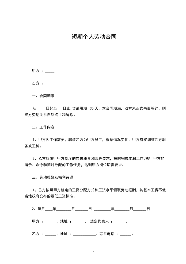 第二条 乙方同意根据甲方工作需要,承担 工作。