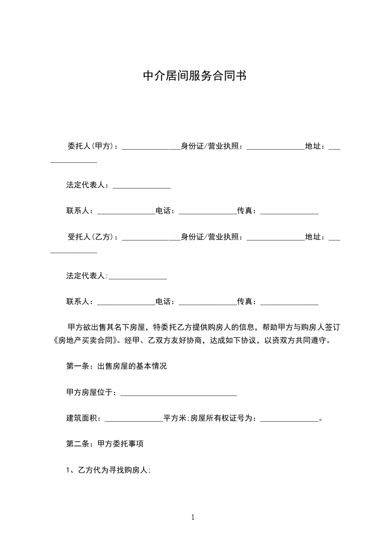 乙方完成居间事项,即甲方与乙方提供的买房人签订《房地产买卖合同》,甲方向乙方支付人民币¥____________元(大写: