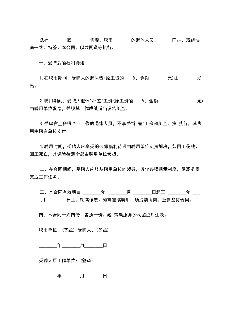 甲方因工作需要,需聘用乙方。鉴于乙方已退休性质,不具备劳动法律关系的主体资格。根据《中华人民共和国民法典》、和有关规定,现经协商一致,特签订本协议,以便共同遵守执行。