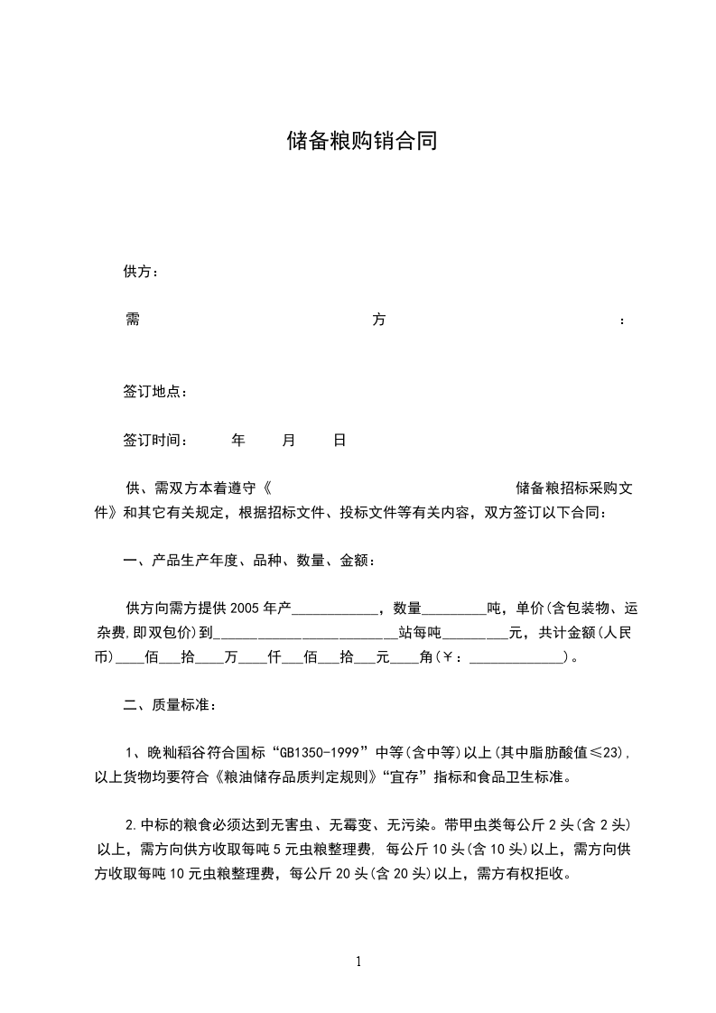 供、需双方本着遵守《 储备粮招标采购文件》和其它有关规定,根据招标文件、投标文件等有关内容,双方签订以下合同: