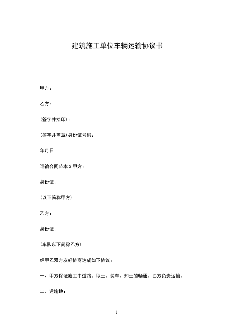 七、此协议双方认同,在约定时间内于_____年_____月_____日乙方将施工车辆安排到现场。