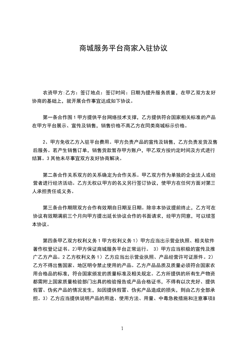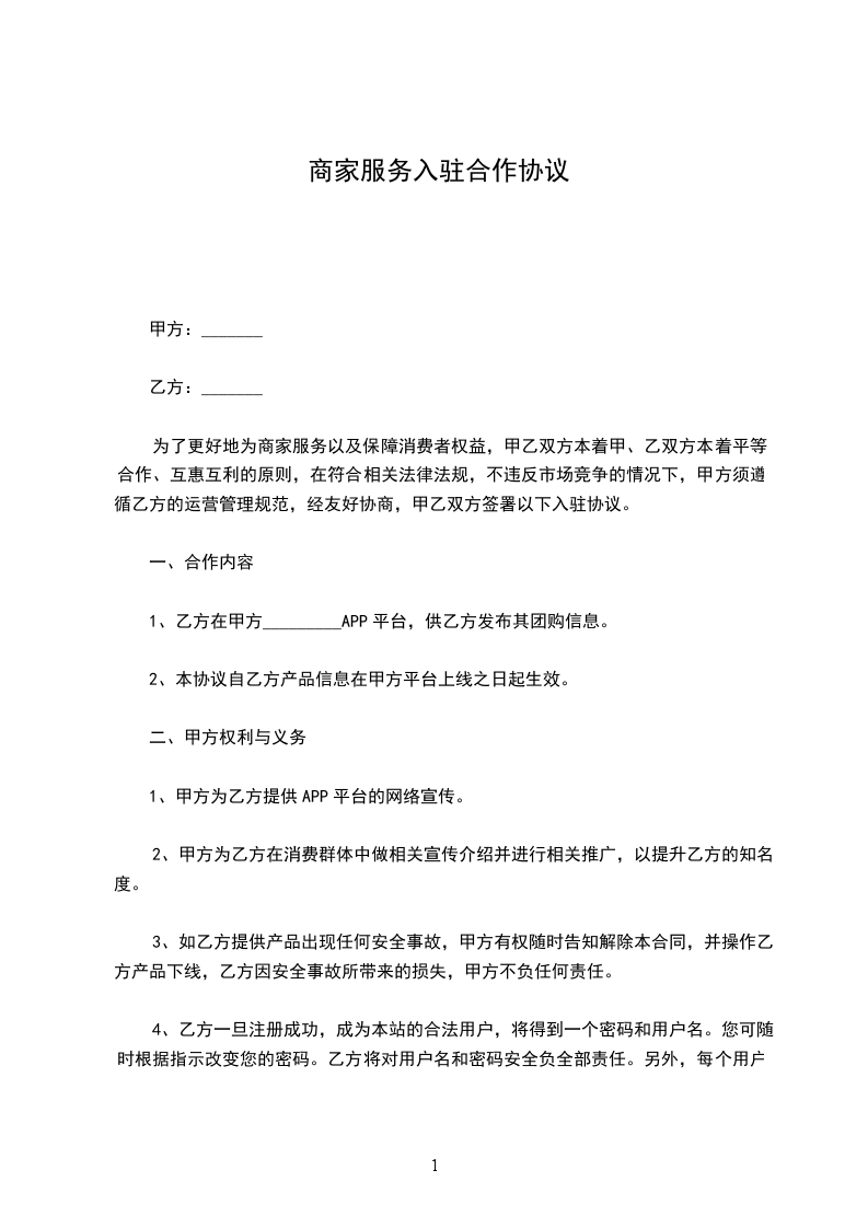 - 甲方为乙方提供平台的入驻账号及相应的操作权限,使乙方能够在平台上展示商品或服务信息、开展交易活动。