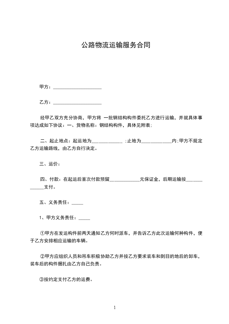 甲、乙双方平等协商,本着互惠互利的原则,就乙方为甲方在提供公路运输工作达成如下协议:
