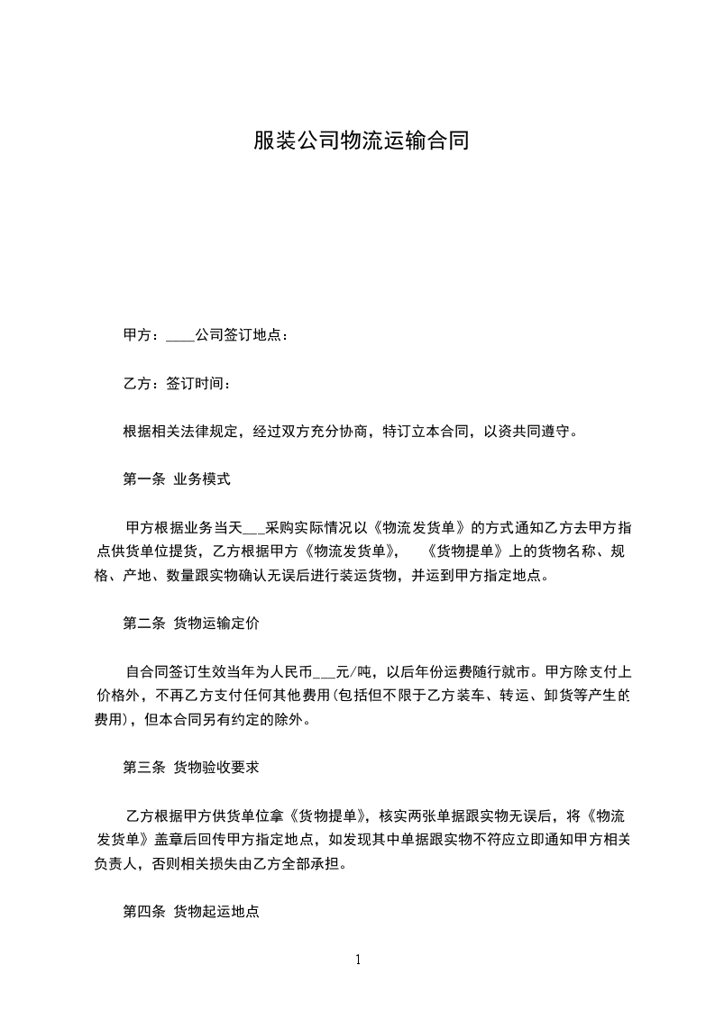 1.1乙方应依《中国外运湖南公司运输委托单》的规定,以证件齐全、有效、性能良好的且适于运输本合同规定货物的交通工具为甲方运输本合同规定的货物。
