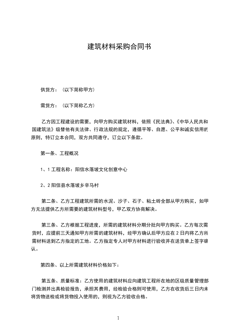 乙方因工程建设的需要,向甲方购买建筑材料,依照《民法典》、《中华人民共和国建筑法》级替他有关法律、行政法规的规定,遵循平等、自愿、公平和诚实信用的原则,特订立本合同,双方共同遵守,订立以下条款。