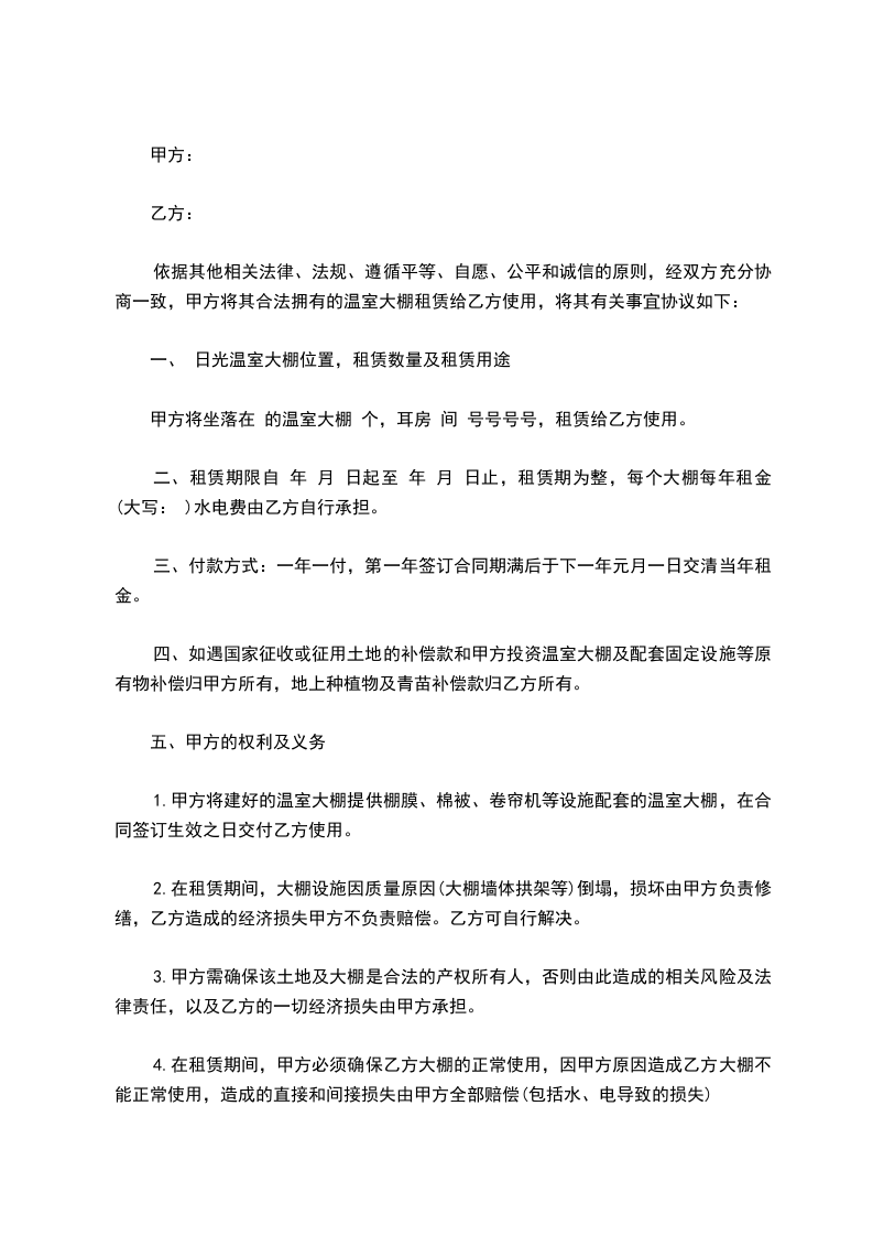 甲乙双方本着平等互利的原则,就乙方向甲方承租封闭温室一事,经充分友好协商,达成如下条款: