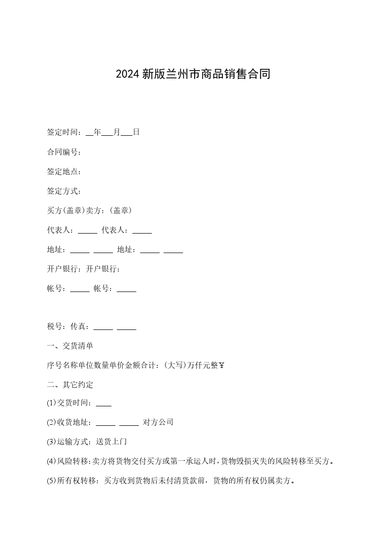 2.交货方式:乙方将货物运至甲方指定的目的地。乙方负责办理货物运至甲方指定的目的地,包括保险和储存在内的一切事项,有关费用已包括在合同总价中。