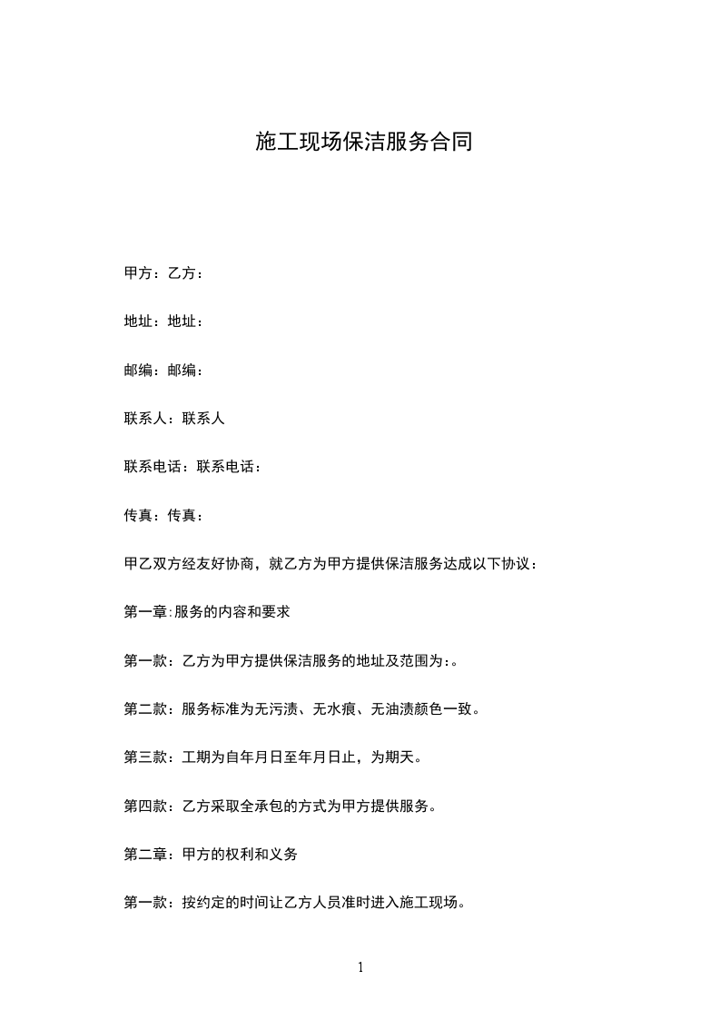 第一款:乙方为甲方提供保洁服务的地址及范围为:。