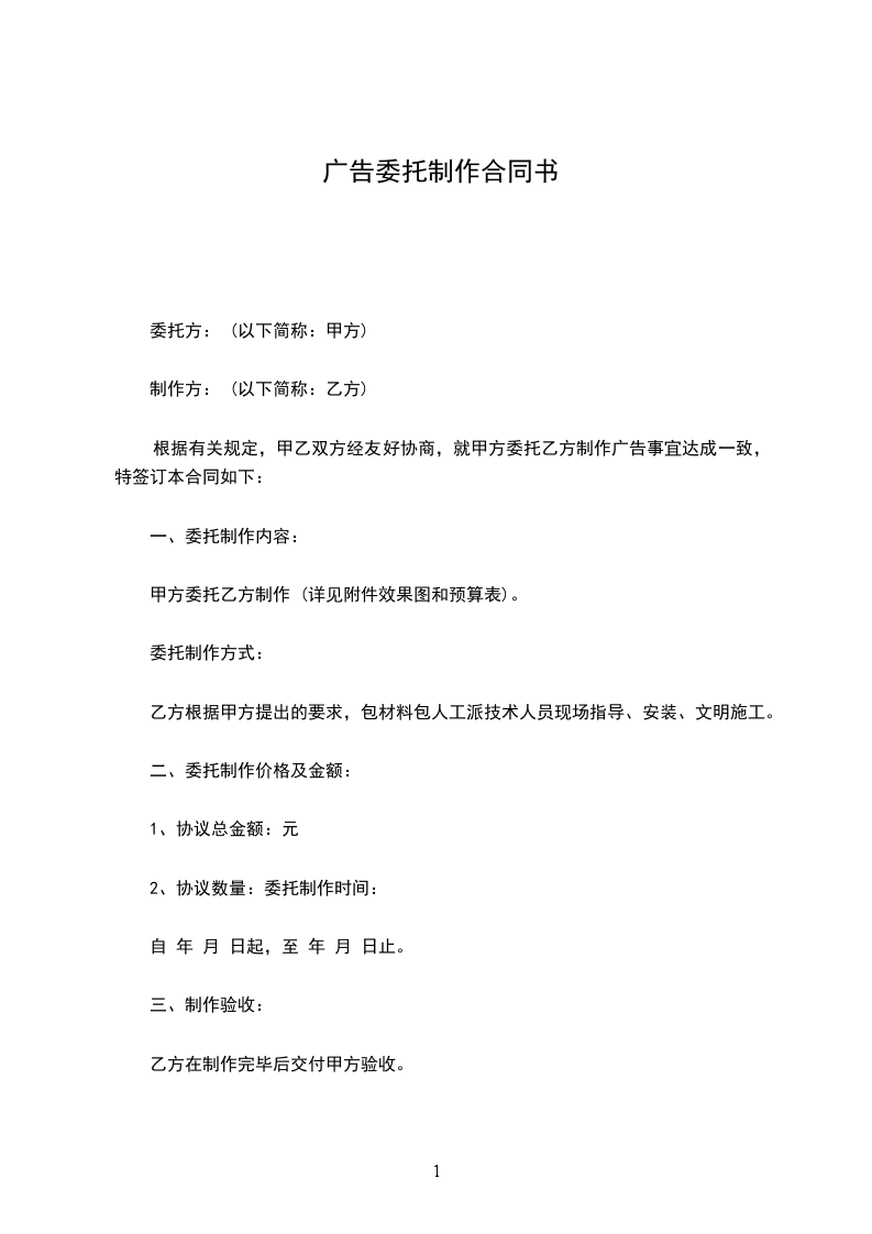 根据有关规定,甲乙双方经友好协商,就甲方委托乙方制作广告事宜达成一致,特签订本合同如下: