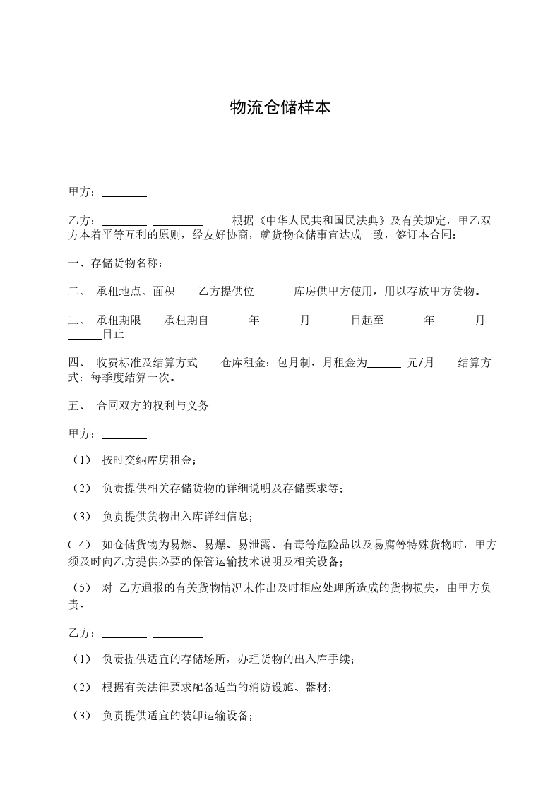 1. 甲方租用乙方提供的仓库;
