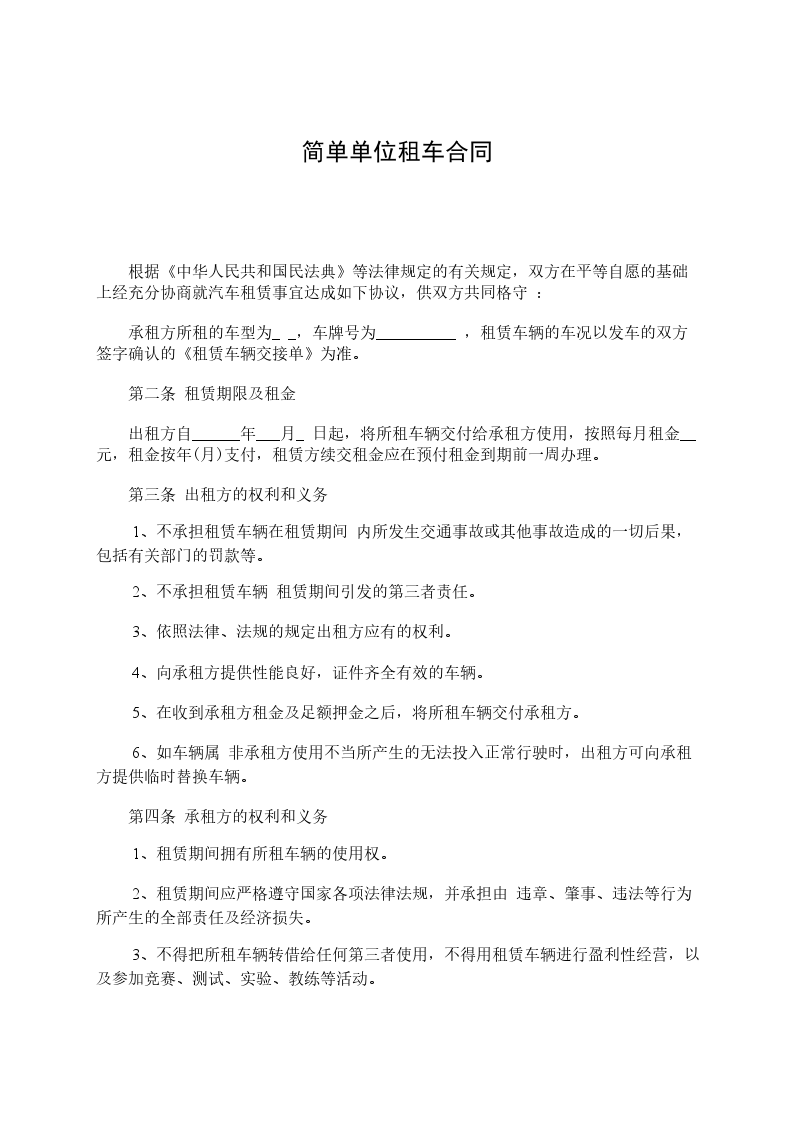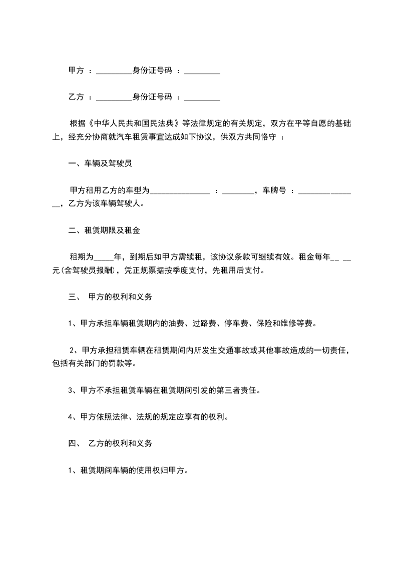 甲方因_____单位工作性质的需要,租用乙方_____(车牌)_____汽车一辆,经双方协商一致,达成协议如下:
