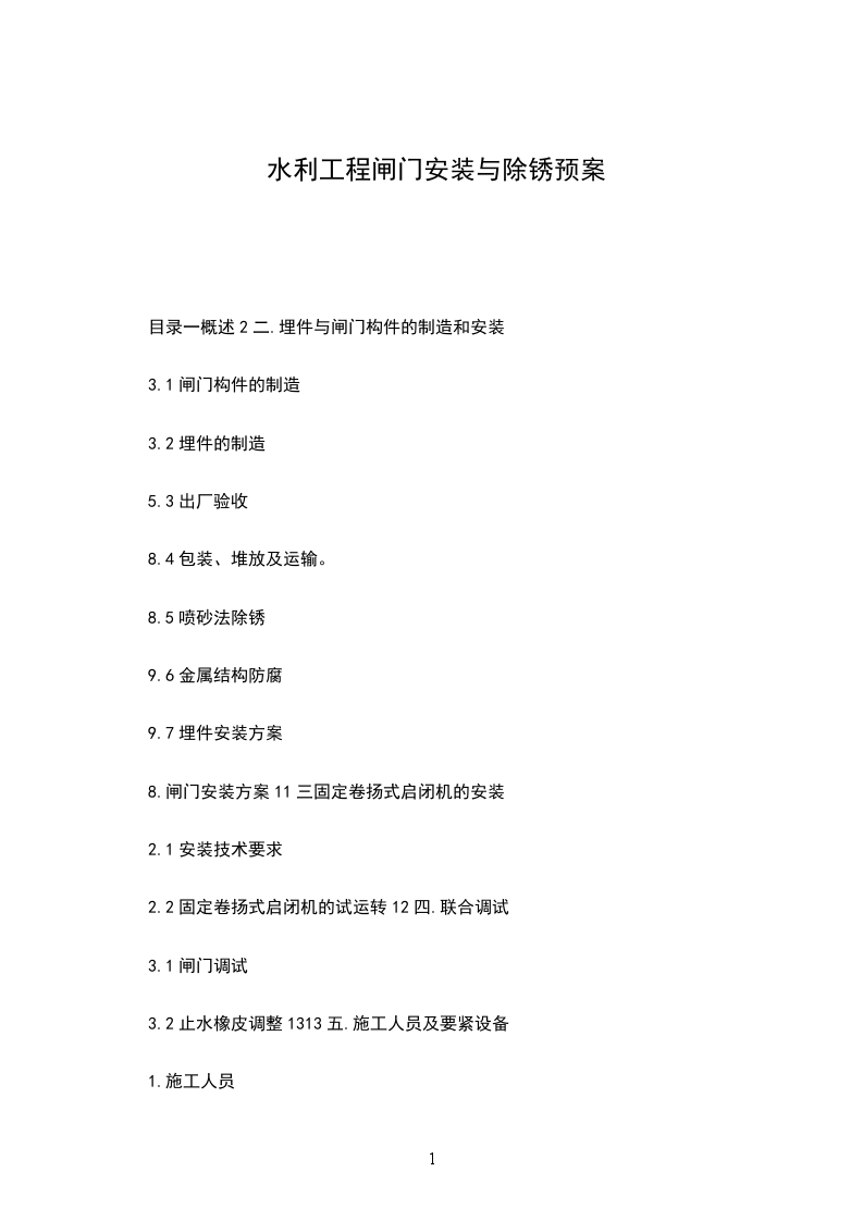 一、 所需运输的设备为:水库闸门、拦污栅及埋件运输。