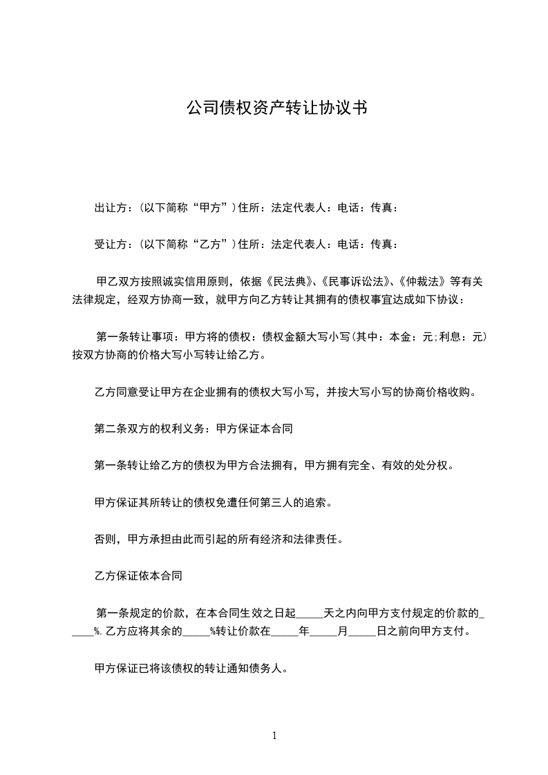 第一条转让事项:甲方将的债权:债权金额大写小写(其中:本金:元;利息:元)按双方协商的价格大写小写转让给乙方。