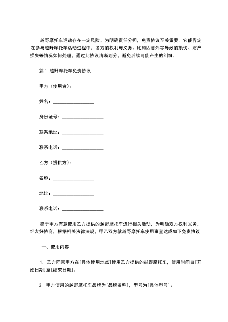 1. 自本协议签订之日起,乙方在使用该摩托车过程中所发生的一切交通事故、违法违规行为、人身伤害及财产损失等,均与甲方无关,甲方不承担任何法律责任。
