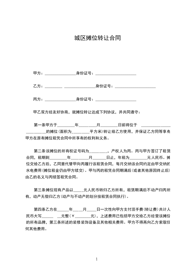 篇1 摊位转让合同