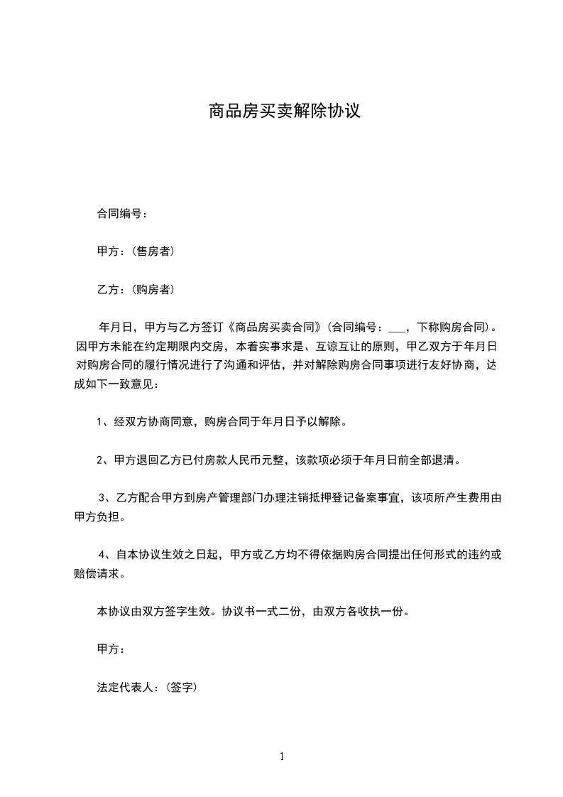 4.甲方按本协议第2条第(6)款约定执行完毕后,双方另行签订解约协议解除该契约。