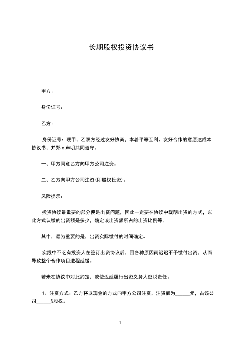 1、注资方式:乙方将以现金的方式向甲方公司注资,注资额为______元,占该公司______%股权。