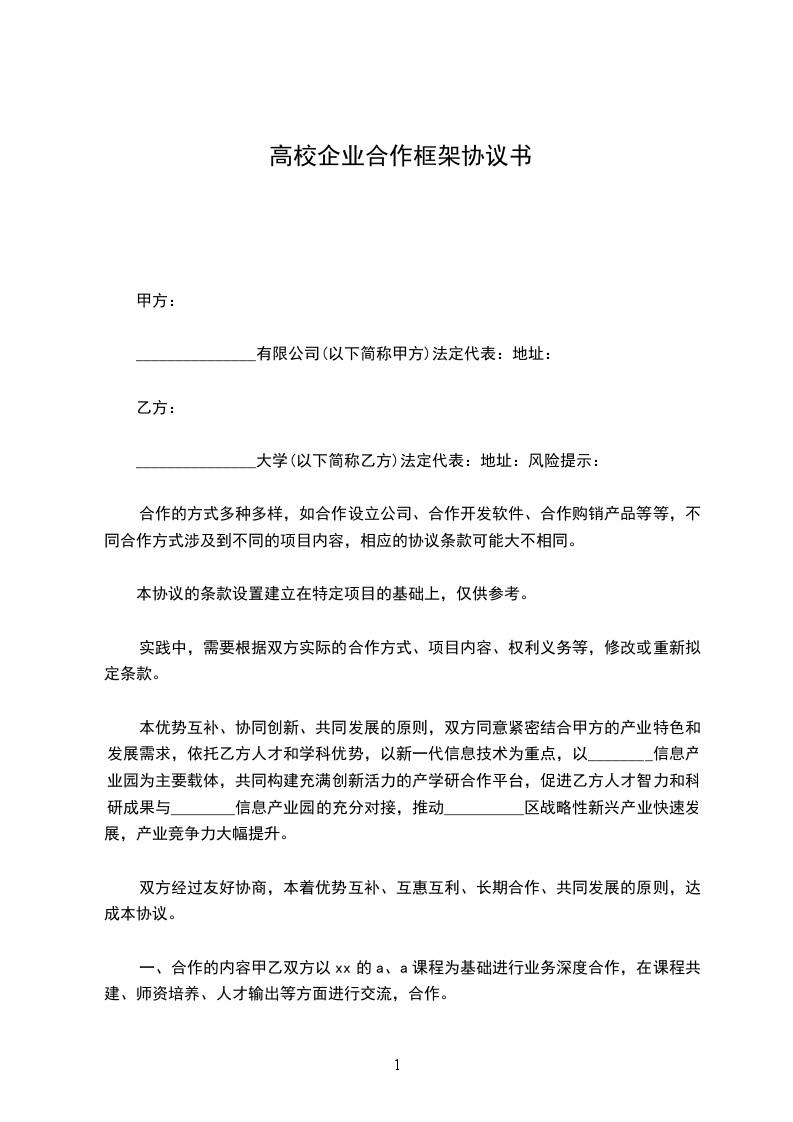 _______________大学(以下简称乙方)法定代表:地址:风险提示: