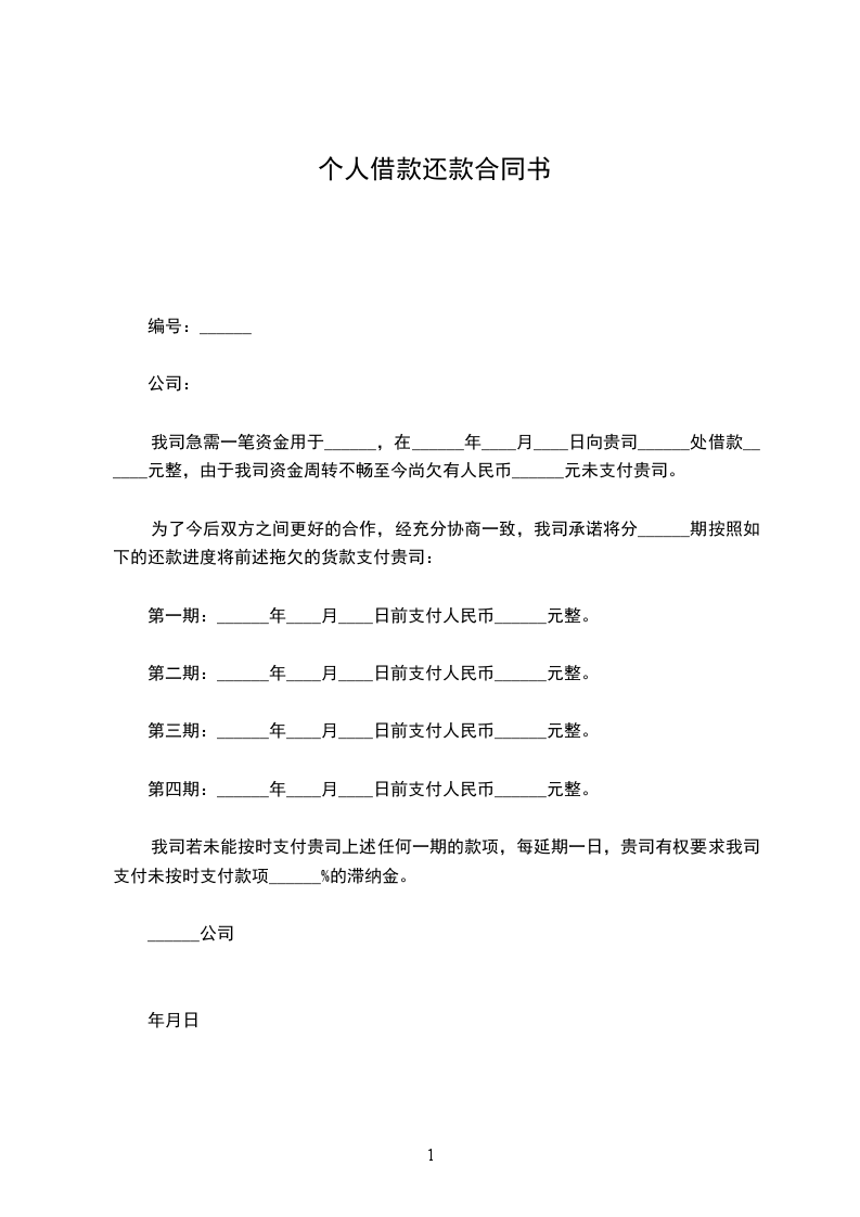 为了今后双方之间更好的合作,经充分协商一致,我司承诺将分______期按照如下的还款进度将前述拖欠的货款支付贵司: