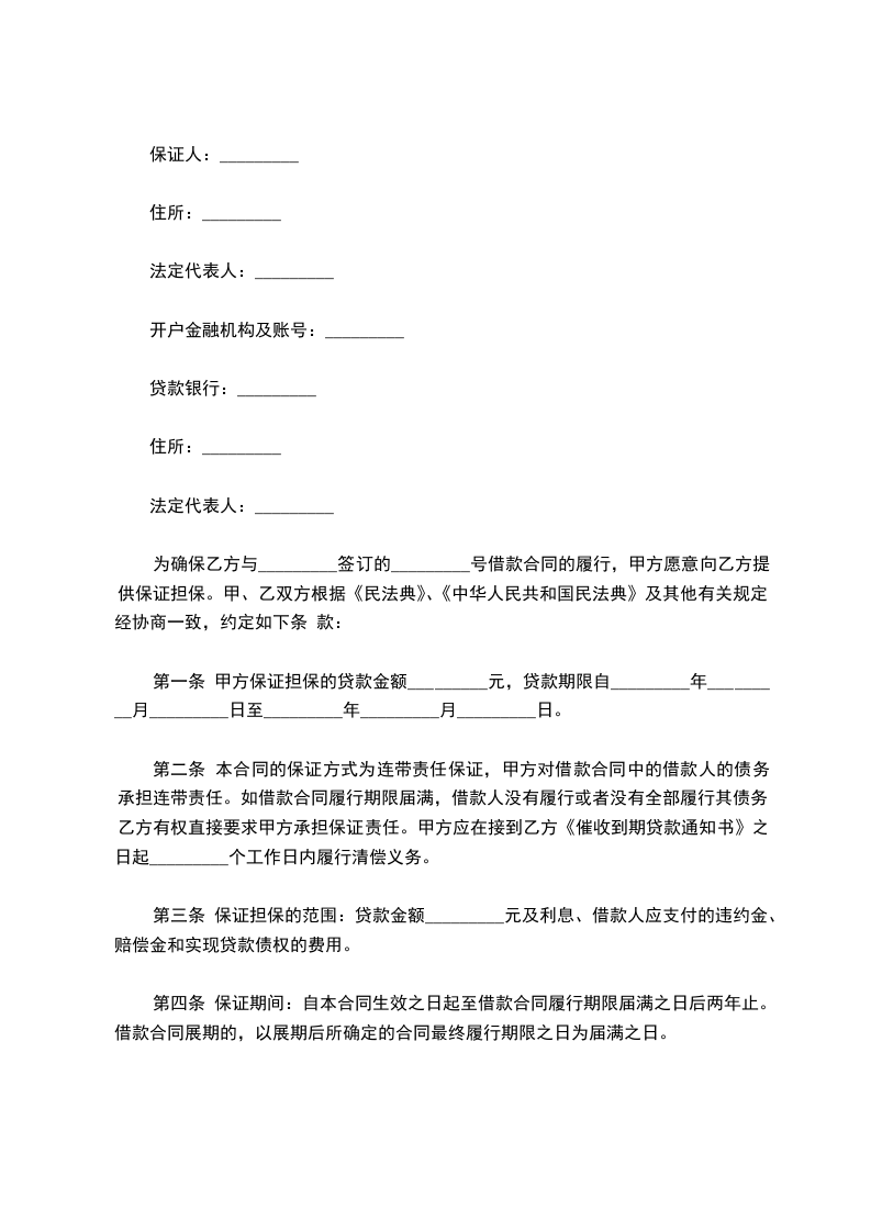 第九条担保人:为确保借款人正当履行还款义务,担保人自愿以其所有权并有权处分权的全部财产担保给贷款人,作为借款人归还借款的担保。