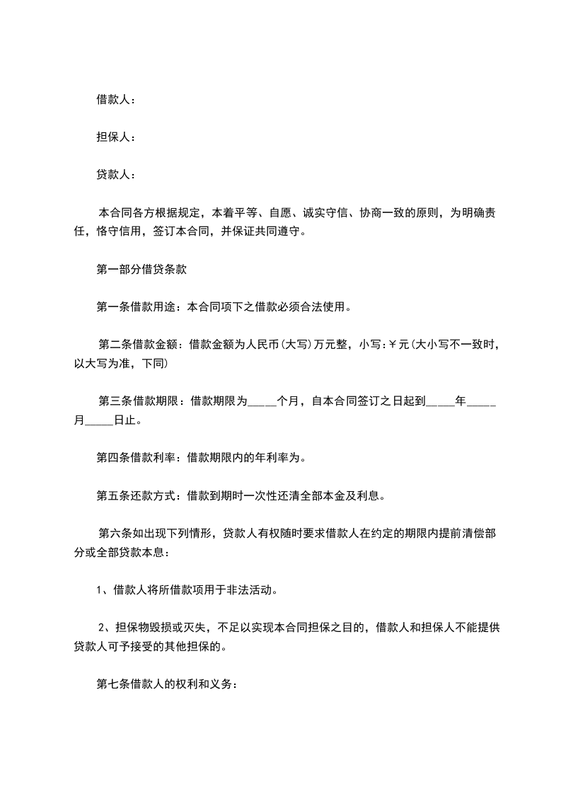 第三条借款期限:借款期限为_____个月,自本合同签订之日起到_____年_____月_____日止。