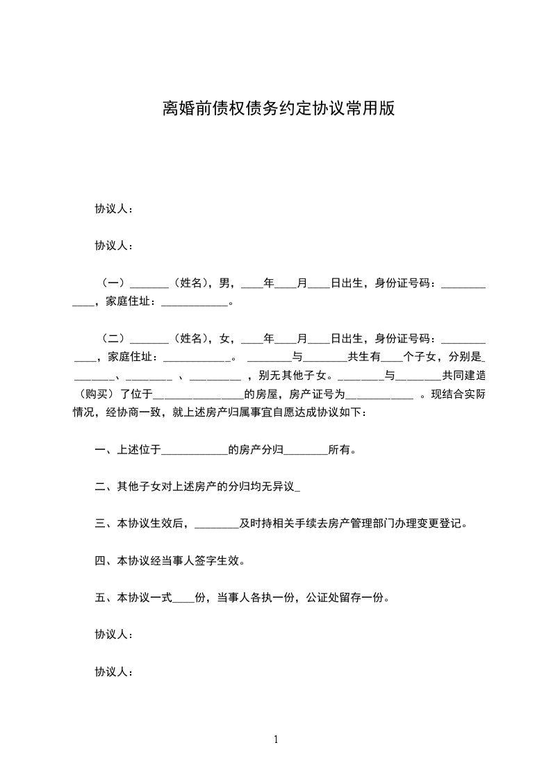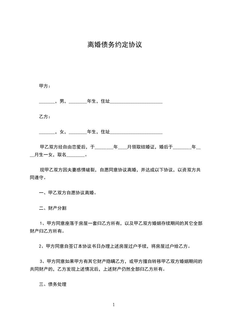 1、甲方双方确认现有夫妻共同债务元,该债务由承担。
