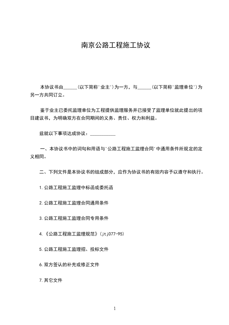 一、本协议书中的词句和用语与'公路工程施工监理合同'中通用条件所规定的定义相同。