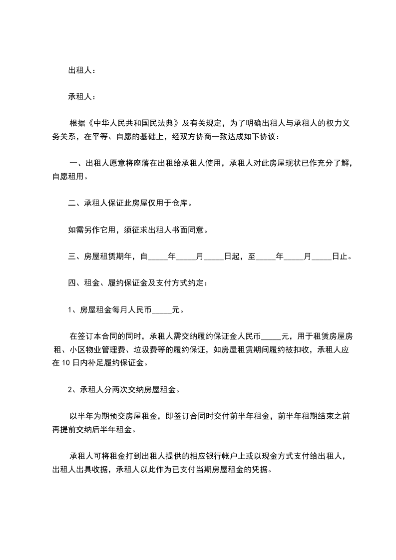 二、承租人保证此房屋仅用于仓库。