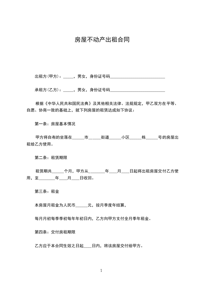 1,该房屋租赁期为______个月,自______年______月______日起,至______年______月______日止。