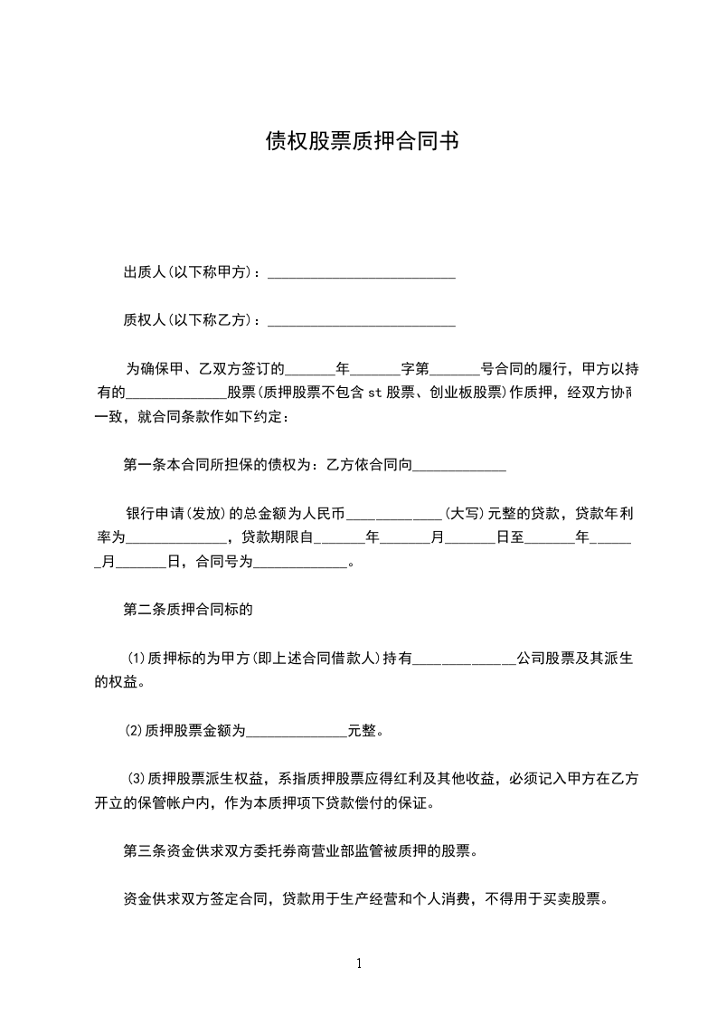 为确保甲、乙双方签订的_______年_______字第_______号合同的履行,甲方以持有的______________股票(质押股票不包含st股票、创业板股票)作质押,经双方协商一致,就合同条款作如下约定: