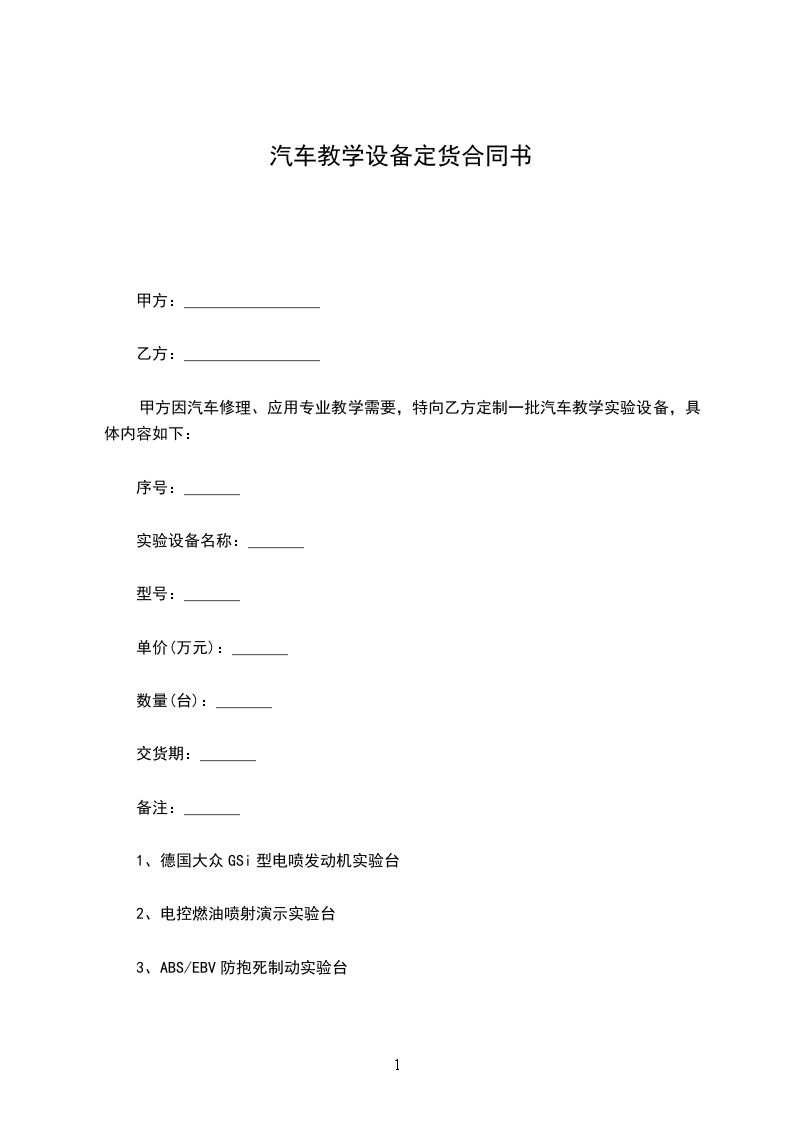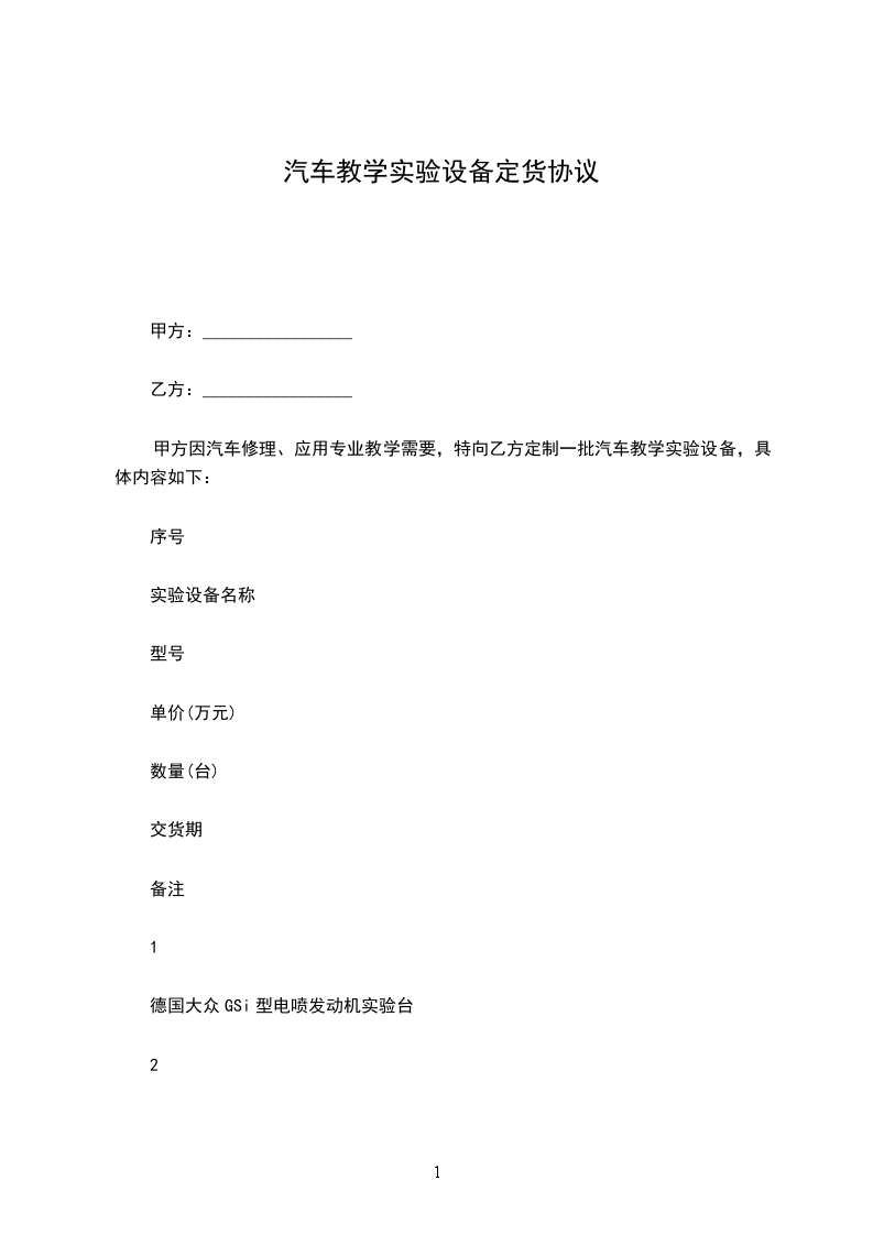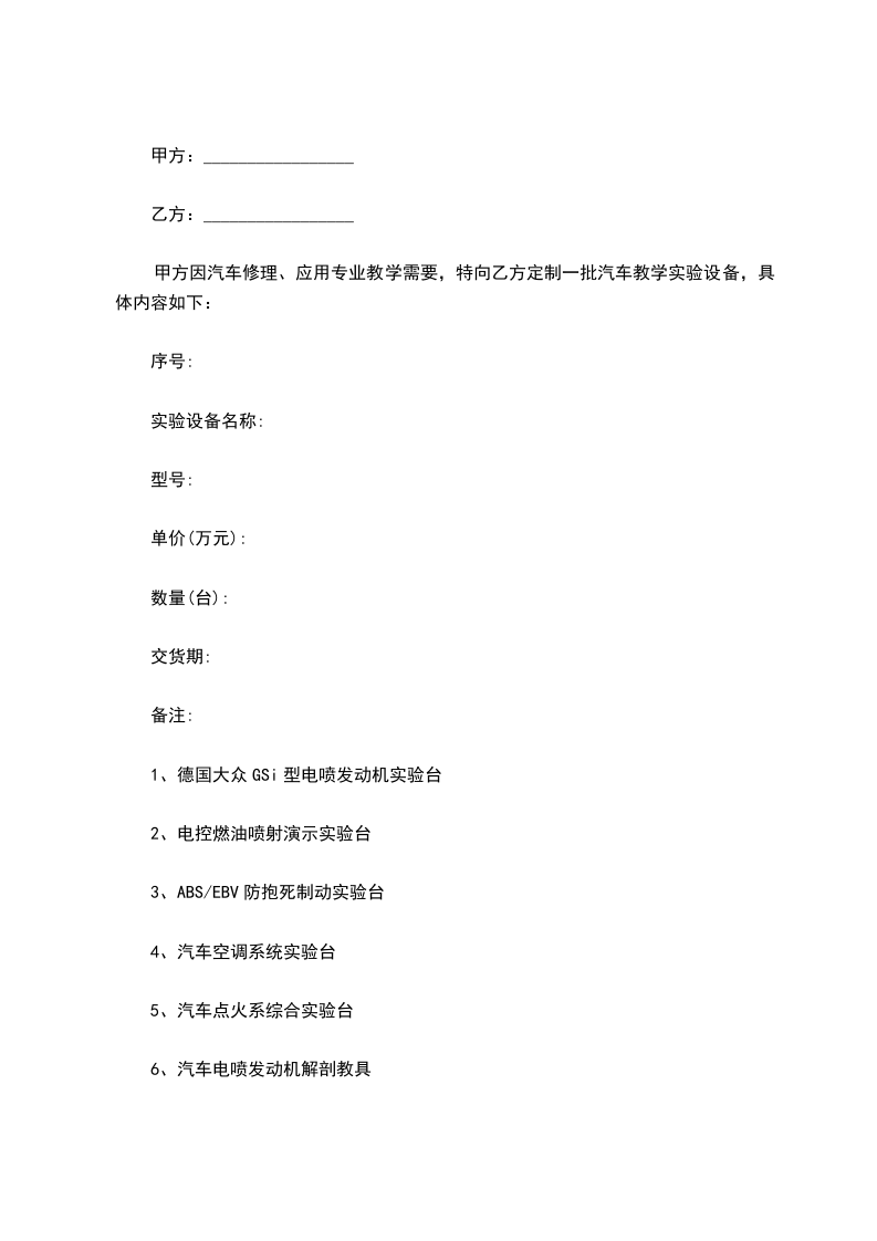 甲方因汽车修理、应用专业教学需要,特向乙方定制一批汽车教学实验设备,具体内容如下: