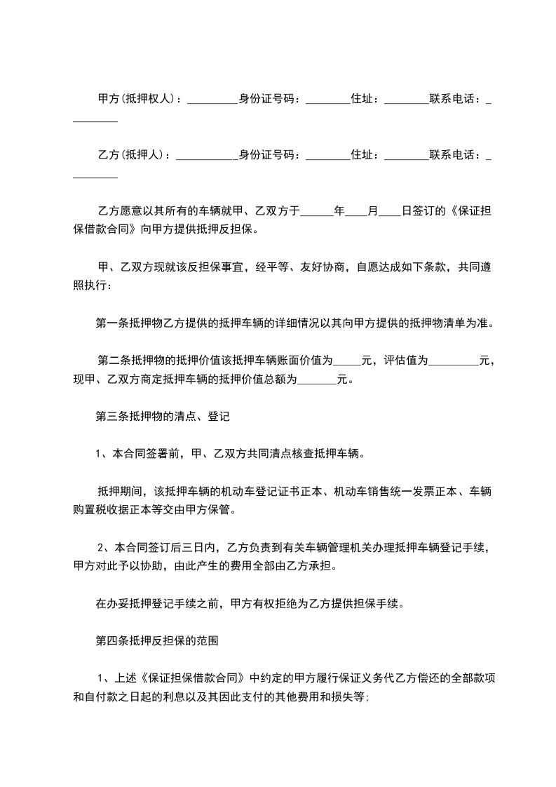 乙方愿意以其所有的车辆就甲、乙双方于______年____月____日签订的《保证担保借款合同》向甲方提供抵押反担保。