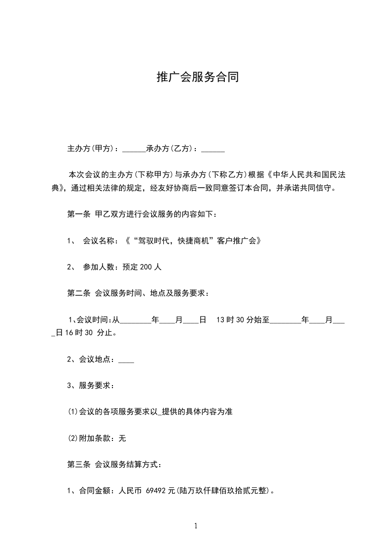 甲方应向乙方支付的推广服务费为人民币____元(大写____元整)。此费用涵盖乙方为甲方提供本协议约定的推广服务所产生的全部费用,包括但不限于策划费、执行费、广告投放费、活动场地费、人员费用等,除本协议另有约定外,甲方无需再向乙方支付其他任何费用。